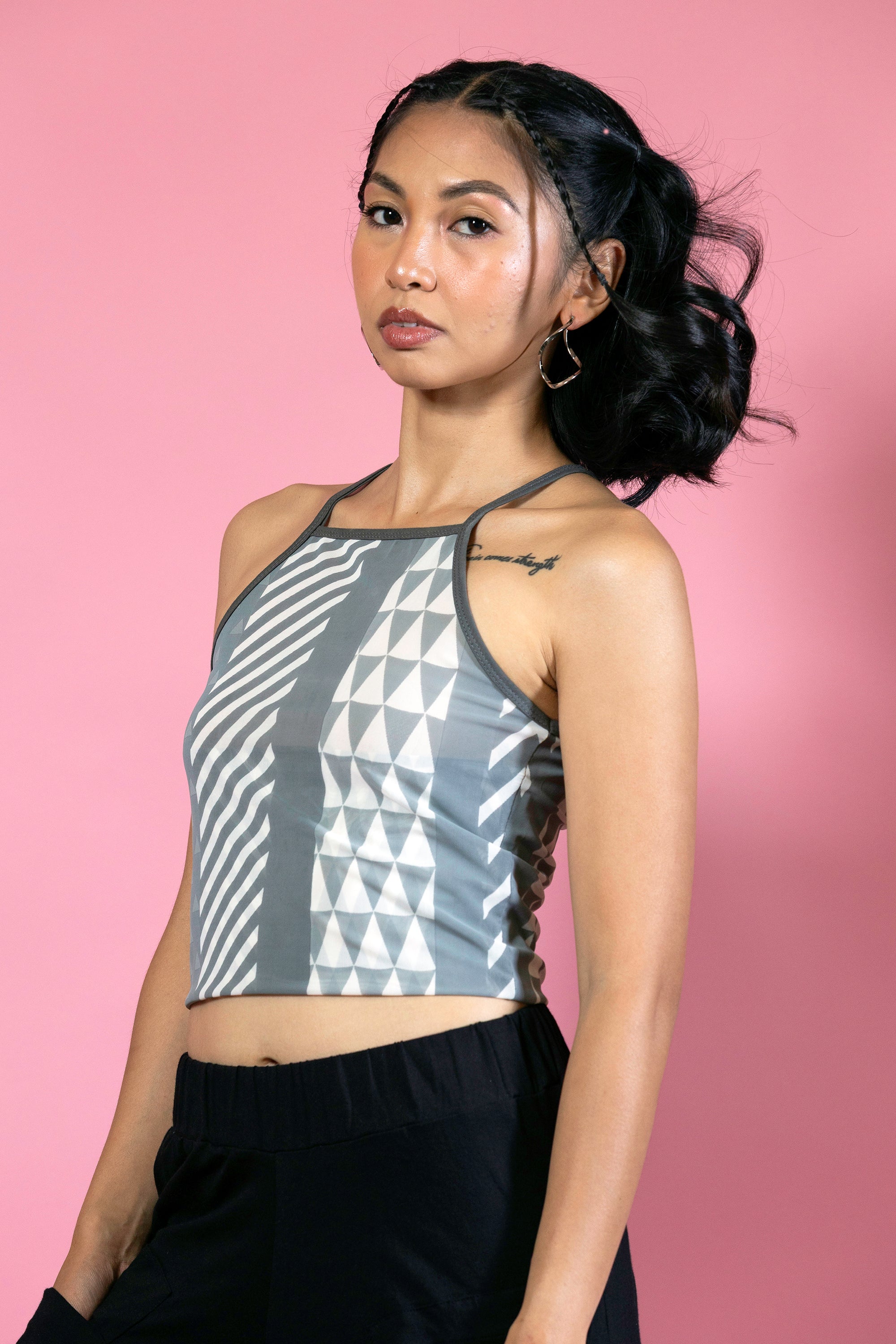 Crafted from breathable polyester mesh, this sporty essential features a sleek racerback design perfect for workouts or casual wear. The eye-catching original Prizma print adds a bold pop of color and personality. With its flattering mid-length cut, you'll stay comfortable and confident whether you're crushing your fitness goals or just vibing with friends.