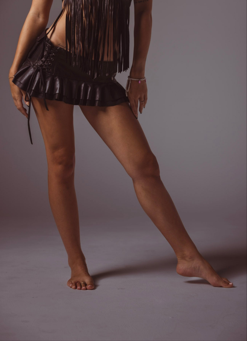 This Leather mini skirt is both fun and functional. The possibilities of layering are endless!