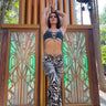 Super fun, low-rise comfortable pant has shirring on the side seam at hem. Make it shorter, wear it full length, whatever you like! Super cute with matching zebra mini-skirt.