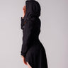 - Detachable ninja hood with stylish black nickel snaps