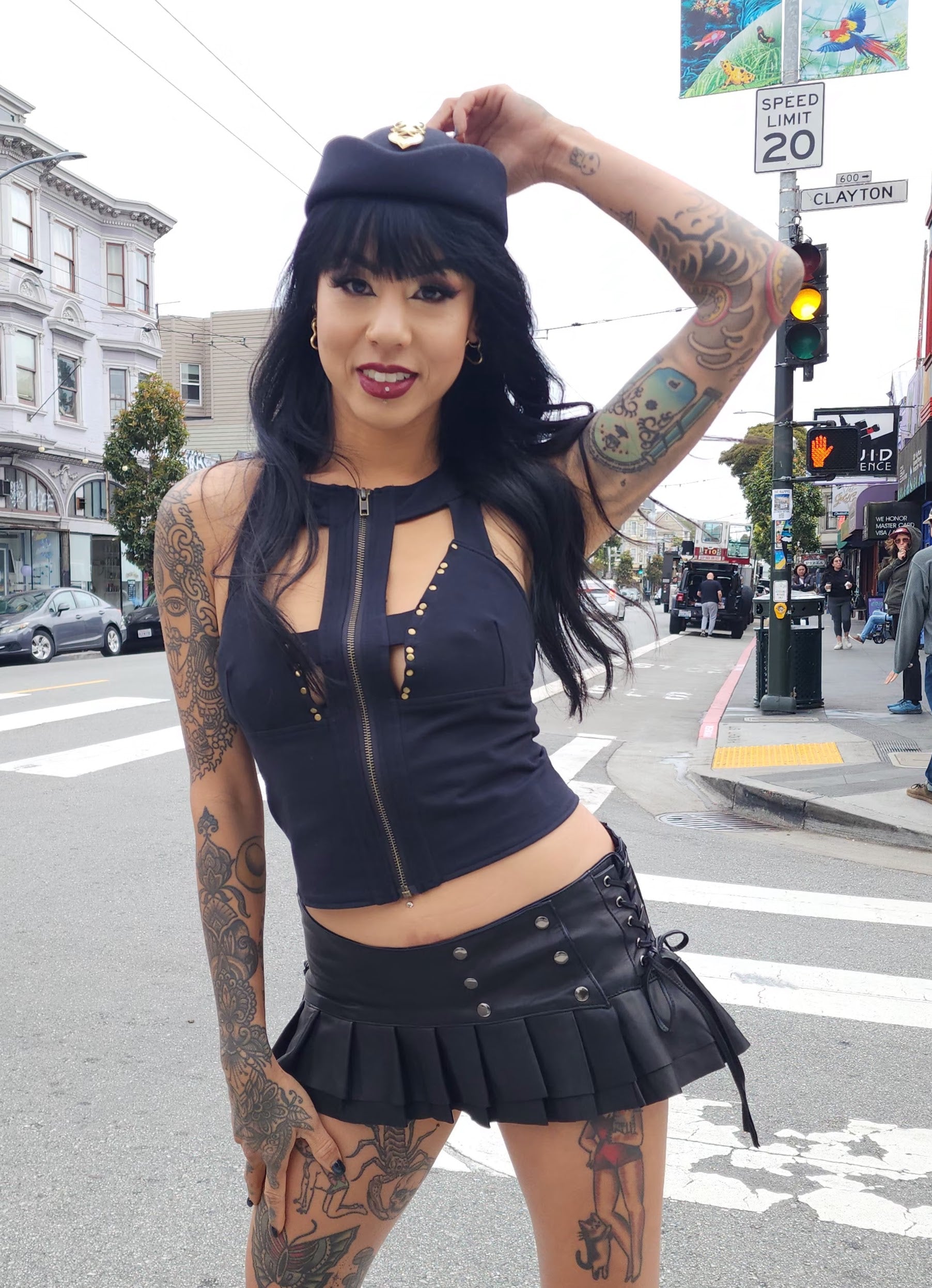 Unleash your wild side with the Nikita Top! This edgy stretch top features a front zip and brass studs for a bold statement. Available in 2 colors for versatile styling. Perfect for any night out !
